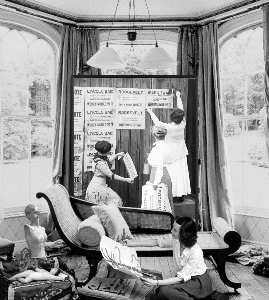 Womankind is an ongoing project that consists of several series of digital photographic collages, made using found archival images, from the internet, magazines, books; and photographs taken by me, to generate fictional documents on women’s history.