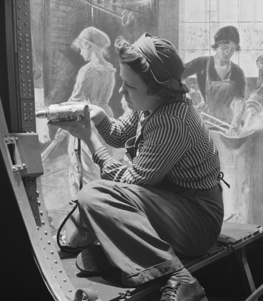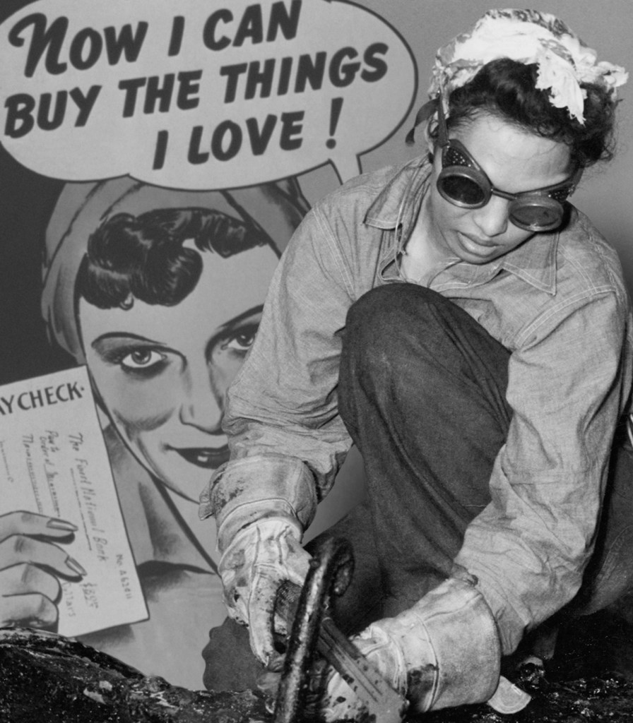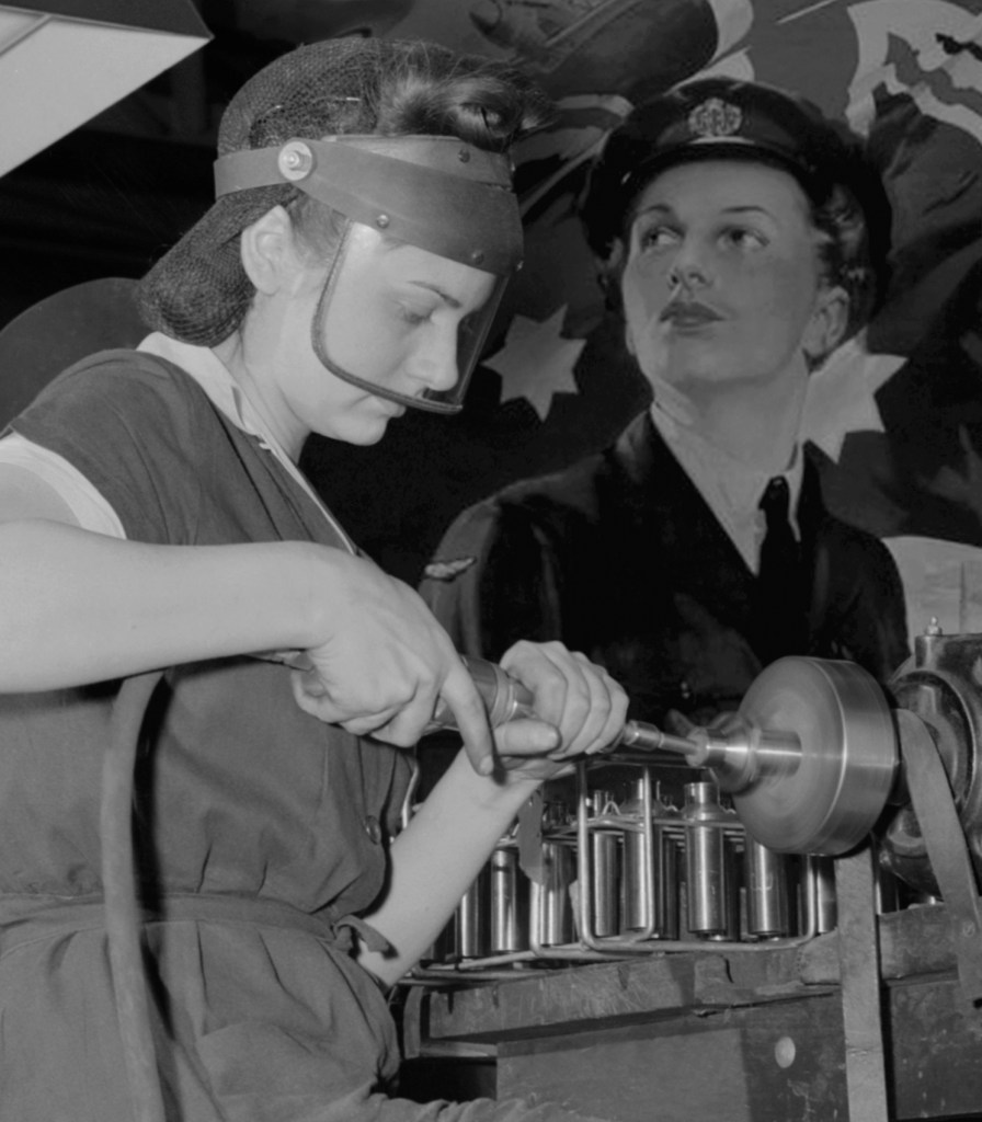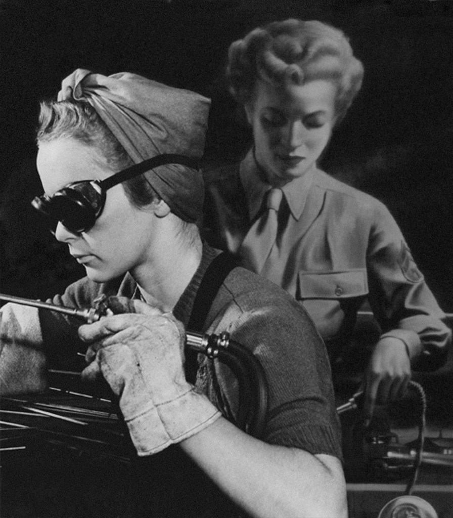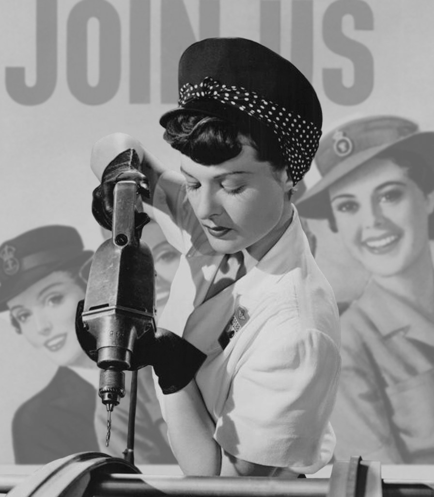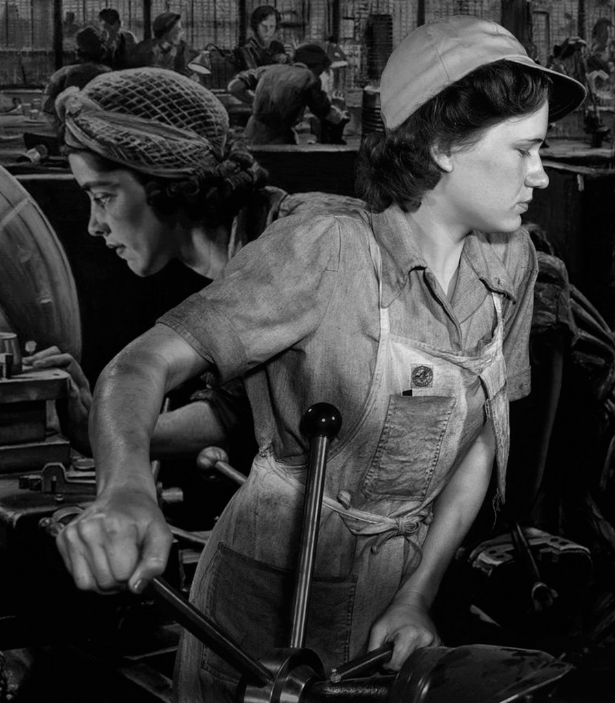 Machine reflects on the female role in the two great wars of the 20th century, particularly the Second World War. Which led them to work in defense plants and factories. These jobs provided unprecedented opportunities to move into occupations previously thought of as exclusive to men. The photos are created from archival images of working women and war propaganda posters from Europe and the United States.