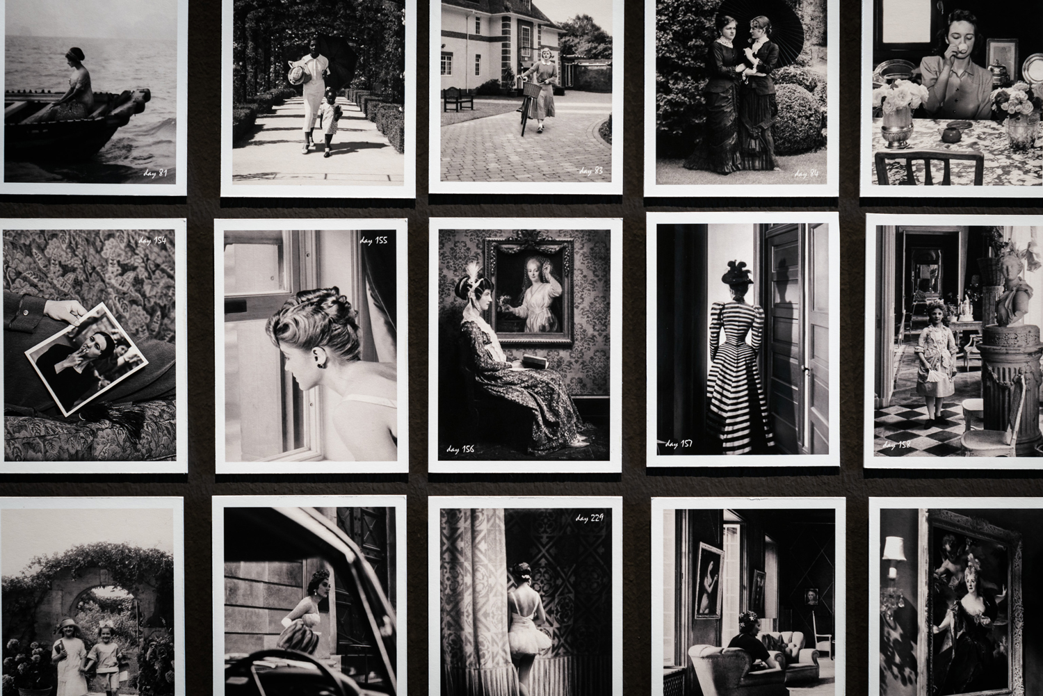 Photo collage. 365 pieces. Digital print on Hahnemühle Photo Rag Ultra Smooth Baryta paper, 305 g. Mounted on Museo Carboard. 8,44 × 11 cm each