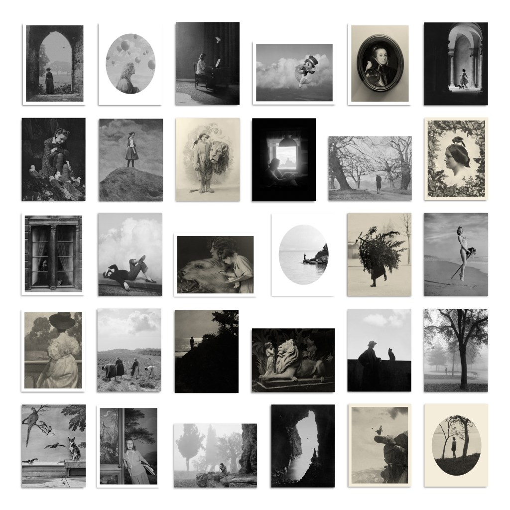 Photo collages. 10 pieces. Digital print on Hahnemühle Photo Rag Baryta paper, 315 g. Image 16×24 cm. Paper 30×40 cm each